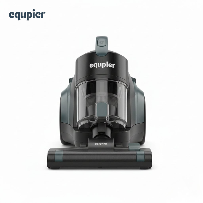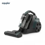 The S5477D is a corded, bagless cyclonic canister vacuum cleaner built for efficiency and convenience. Its design features a main unit with large, stable rear wheels for easy maneuverability and a clear, easy-to-empty dust cup, eliminating the ongoing cost and hassle of bags. The multi-stage filtration system, including a Washable HEPA Filter, ensures that fine particles and allergens are effectively trapped. It comes standard with a hose, a telescopic metal extension wand for adjustable reach, and a multi-floor cleaning head suitable for both hard floors and carpets. The unit is typically finished in a modern black and dark gray/teal color scheme, as seen in the images.