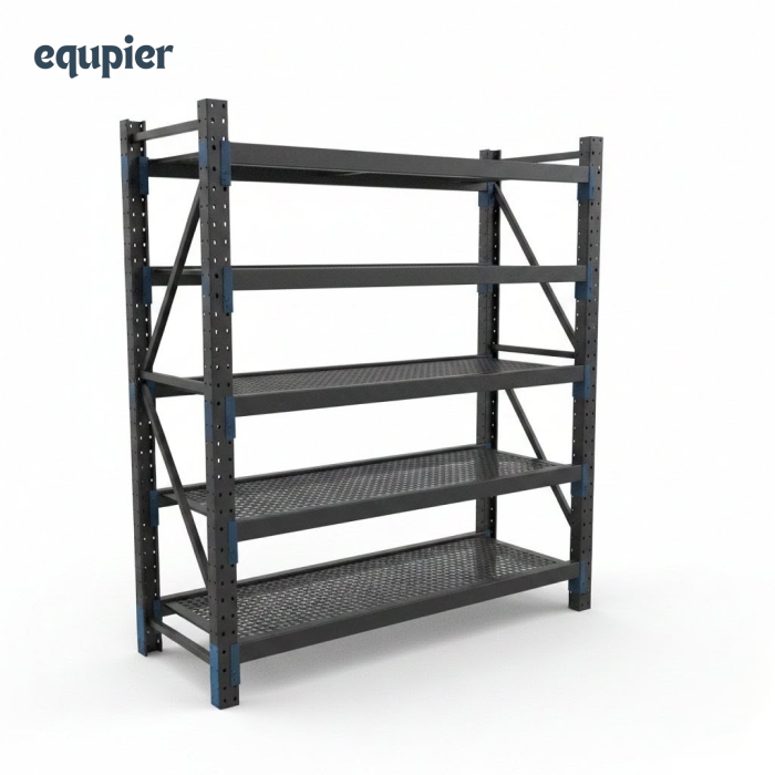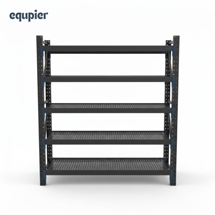 The equpier 5-Tier Shelving Unit is a robust and highly versatile storage solution built with industrial-grade steel for maximum durability and strength. It features an adjustable, boltless design that simplifies assembly, making it ideal for organizing bulky and heavy items. The rack’s large capacity and stability are perfect for commercial or extensive home storage needs.