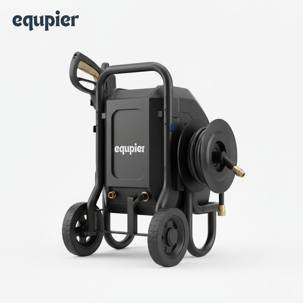 This power washer utilizes a reinforced, corrosion-resistant axial pump and a powerful 14.5-amp electric motor. The exterior is constructed from high-impact, weather-resistant polymers in a signature matte black finish. Unlike standard portable units, this model features an integrated manual hose reel located at the top of the handle, allowing for kink-free storage of the 20–25 foot high-pressure hose. The large, “never-flat” rugged wheels and telescopic handle make it highly maneuverable across uneven terrain like lawns or gravel driveways.