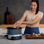This multi-cooker combines the functionality of ten kitchen appliances into one compact unit, helping to reduce countertop clutter. The 6.5-quart cooking pot is substantial enough to fit a 7-lb roast or four 6-oz chicken breasts, feeding up to 6 people. The cooker boasts 8 specific functions and is designed for easy, “set it and forget it” meals. A key feature is the oven-safe pot, which can be transferred from the cooker base directly to an oven (up to 500°F) for a crispy finish, and then directly to the table for serving. The system is also designed for faster cooking, including rice that cooks 50% quicker than a traditional rice cooker.
