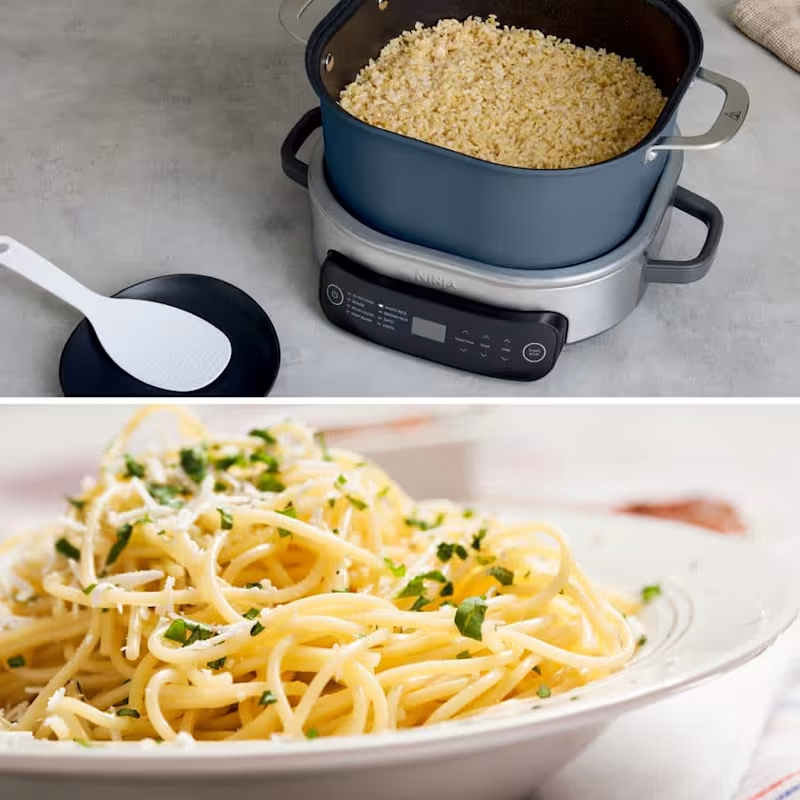 • 8 Cooking Functions: Slow Cook, Sear/Sauté, Braise, Keep Warm, White Rice, Brown Rice, Oats, and Pasta.